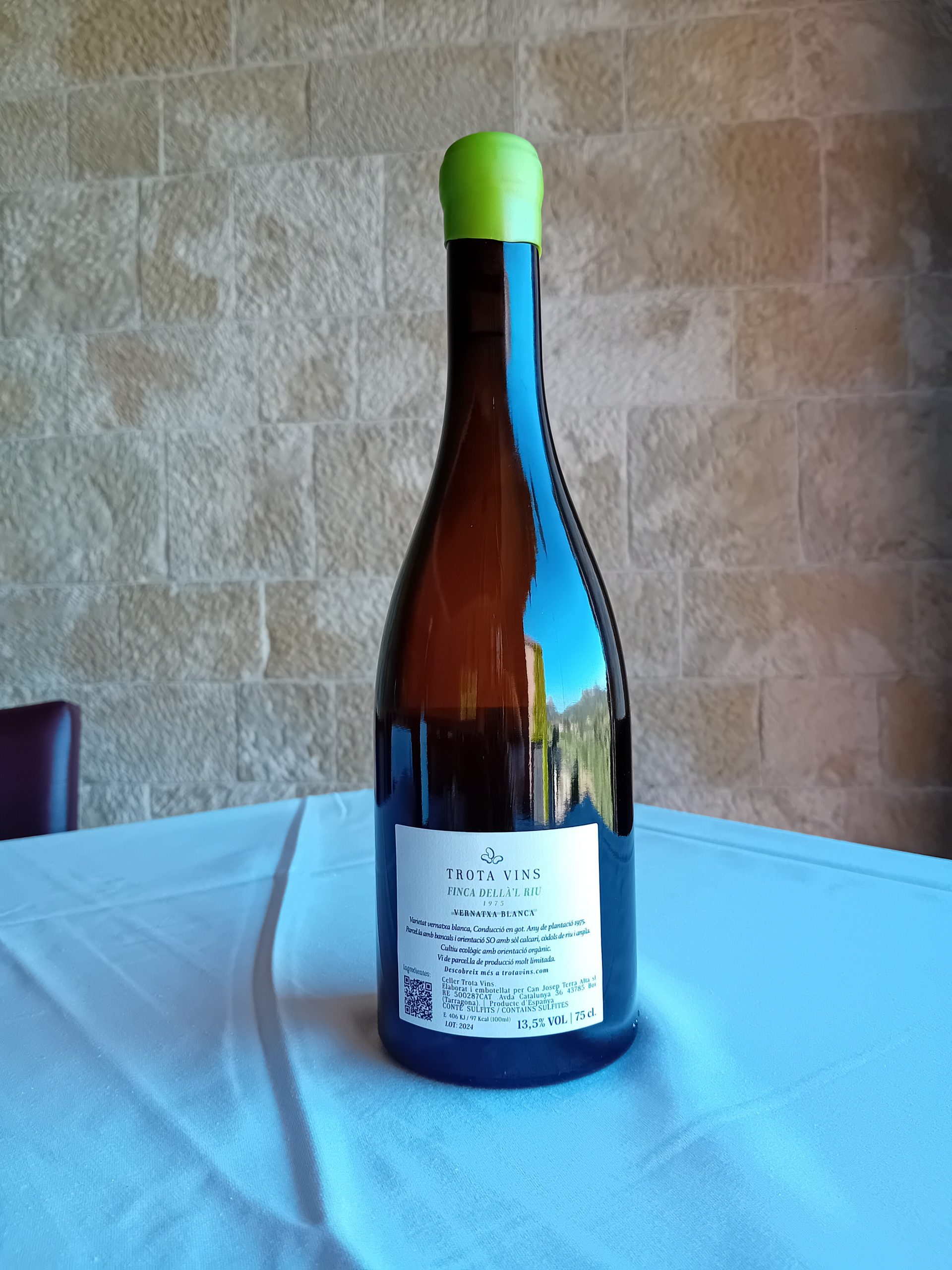 Varietat: garnatxa blanca. Plantada en vas l’any 1975. Parcel·la en bancals amb orientació sud-oest. Sòl calcari, còdols de riu i argila. Cultiu ecològic amb orientació orgànica. Vi de parcel·la de producció molt limitada.